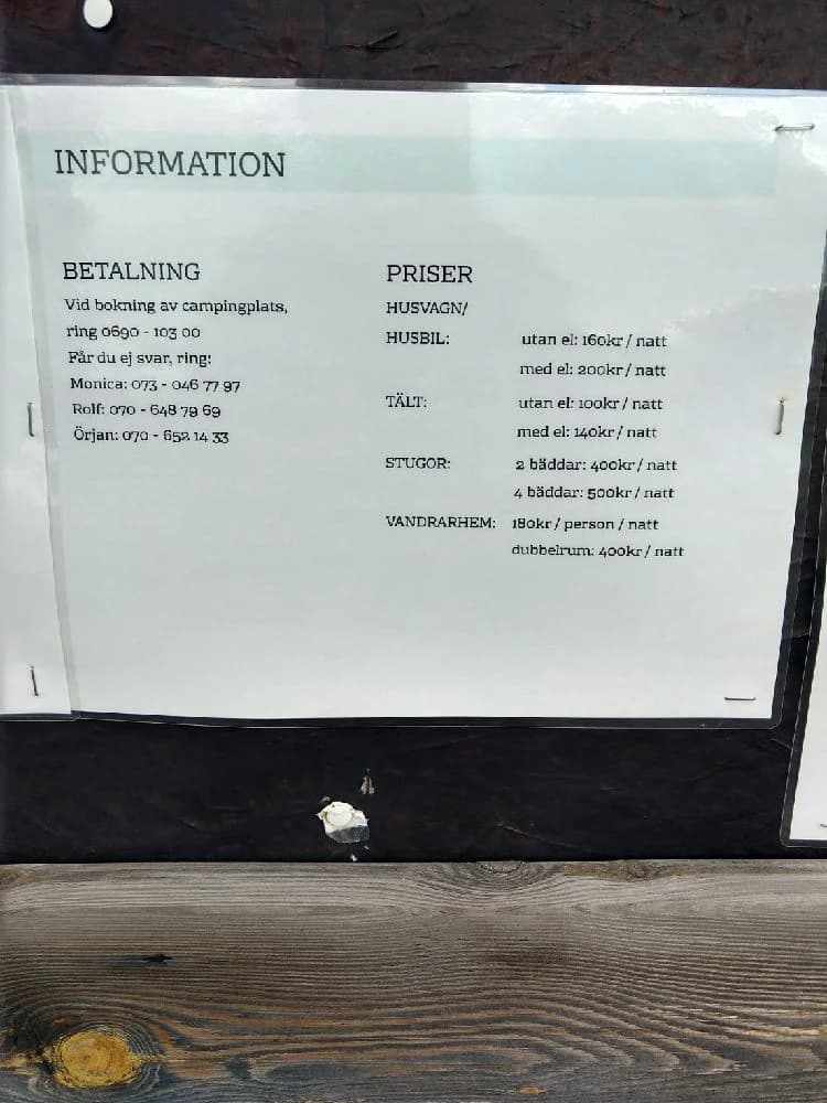 Vi arbetar ständigt med att uppdatera vår data om Sveriges ställplatser, och informationen är allt som oftast mycket tillförlitlig. Vi tar dock inte ansvar för att all information alltid är korrekt uppdaterad, för specifika önskemål kontakta den valda ställplatsen.