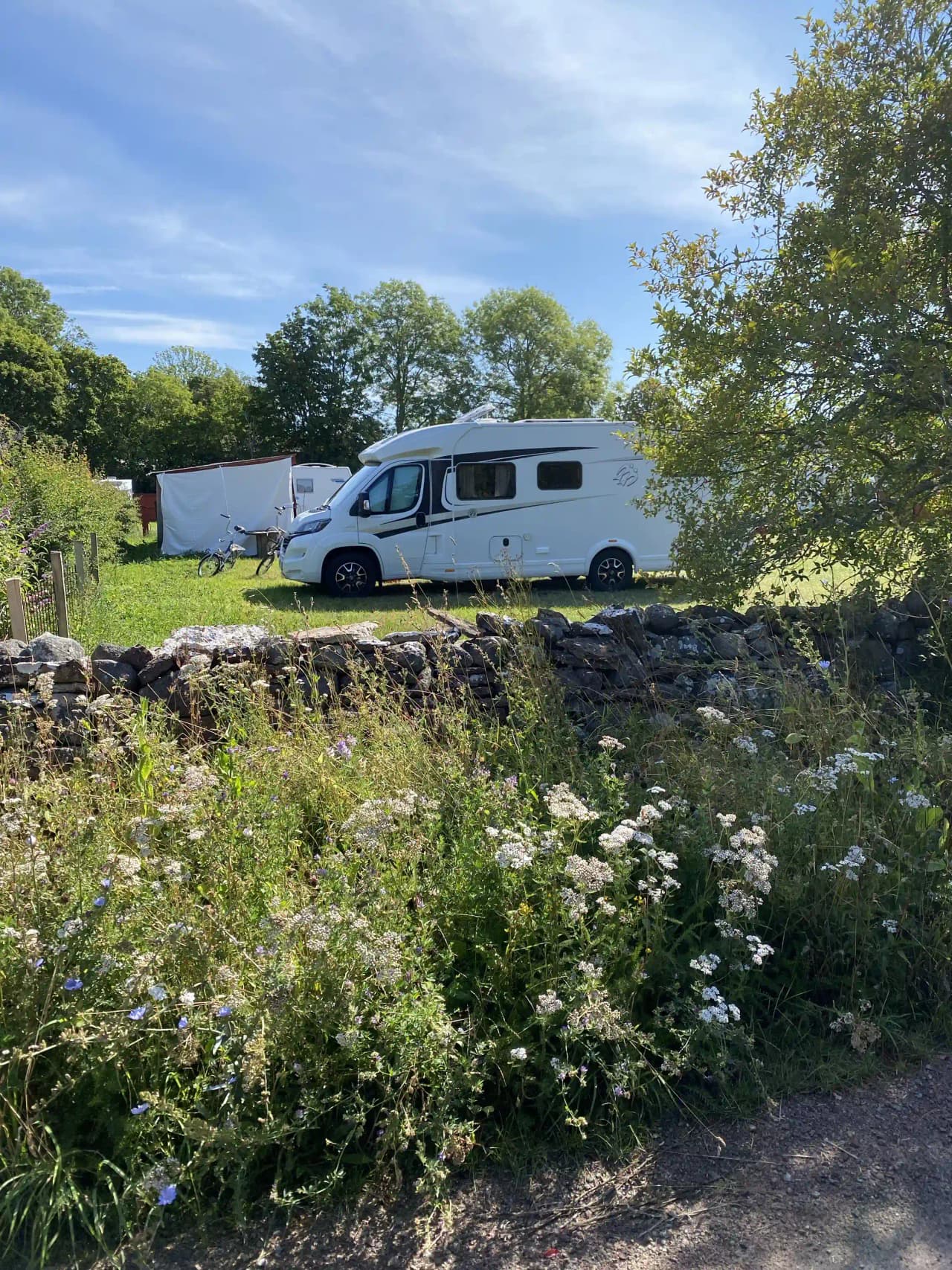 - Faciliteter (enl. taggar/text): Ställplatser på gräs, el, vatten, dusch, tillgång till konstgalleri, evenemang (säsongsbetonat), närhet till natur, hav, vandring, cykling.